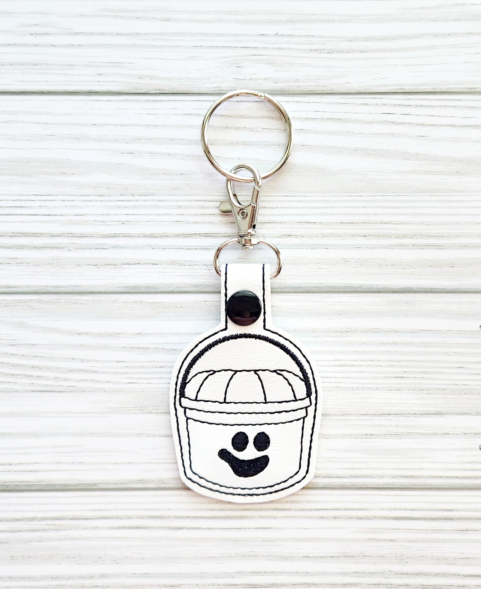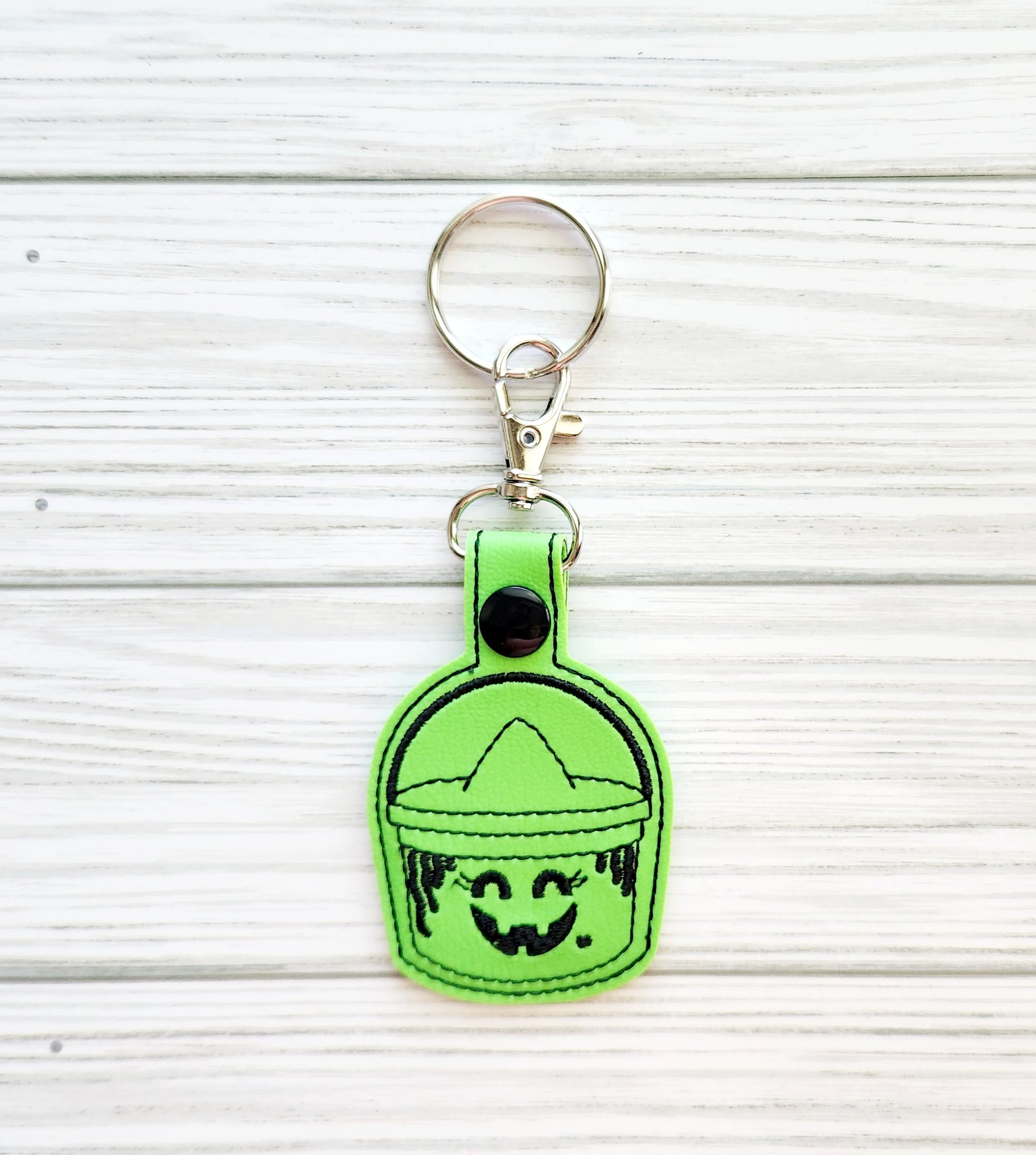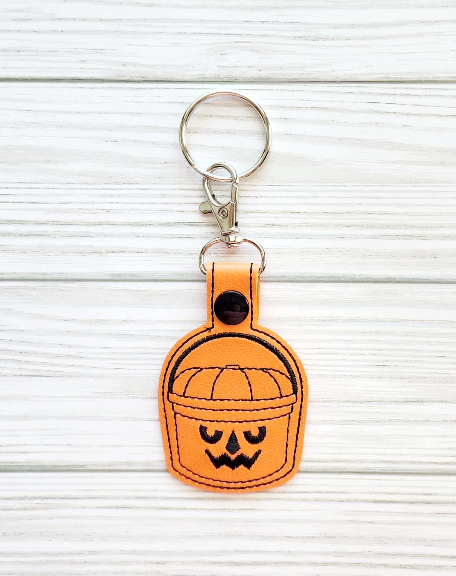 These Halloween Bucket Keychains are fun and festive accessory perfect for adding a touch of spooky to your bag, purse, or backpack. Each keychain features a different Halloween character - ghost, witch, and jack o lantern - with embroidered accents. Made from vinyl and handmade in the United States, these keychains come in a variety of colors including orange, white, black, and green. With a holiday and Halloween theme, this set is a versatile and multifunctional accessory for both men, women, and children who love to show off their Halloween spirit. They are also perfect gifts for kids. Use them on their trick or treat buckets to add extra flair!