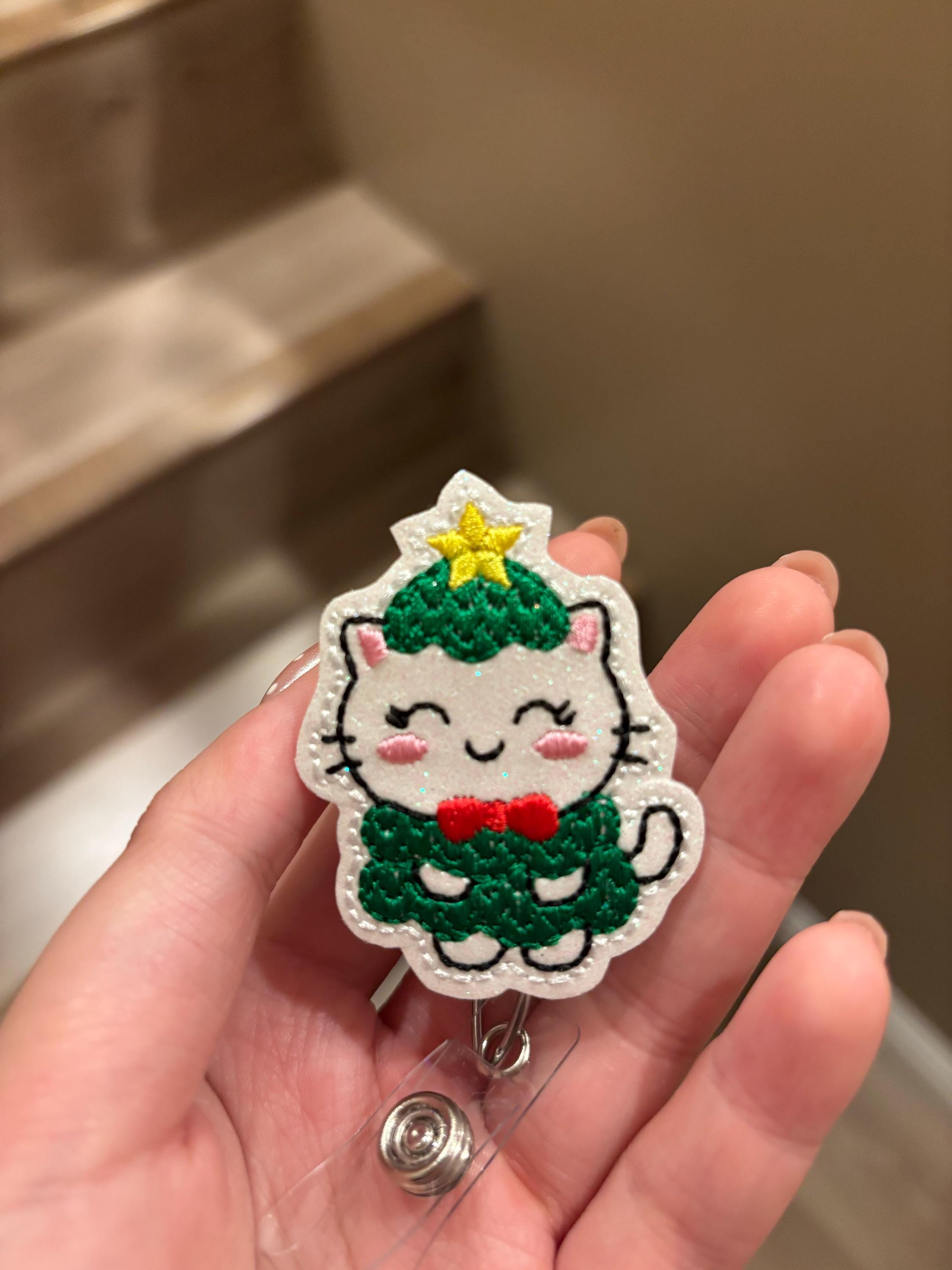 Christmas Tree Cat Badge Reel Topper